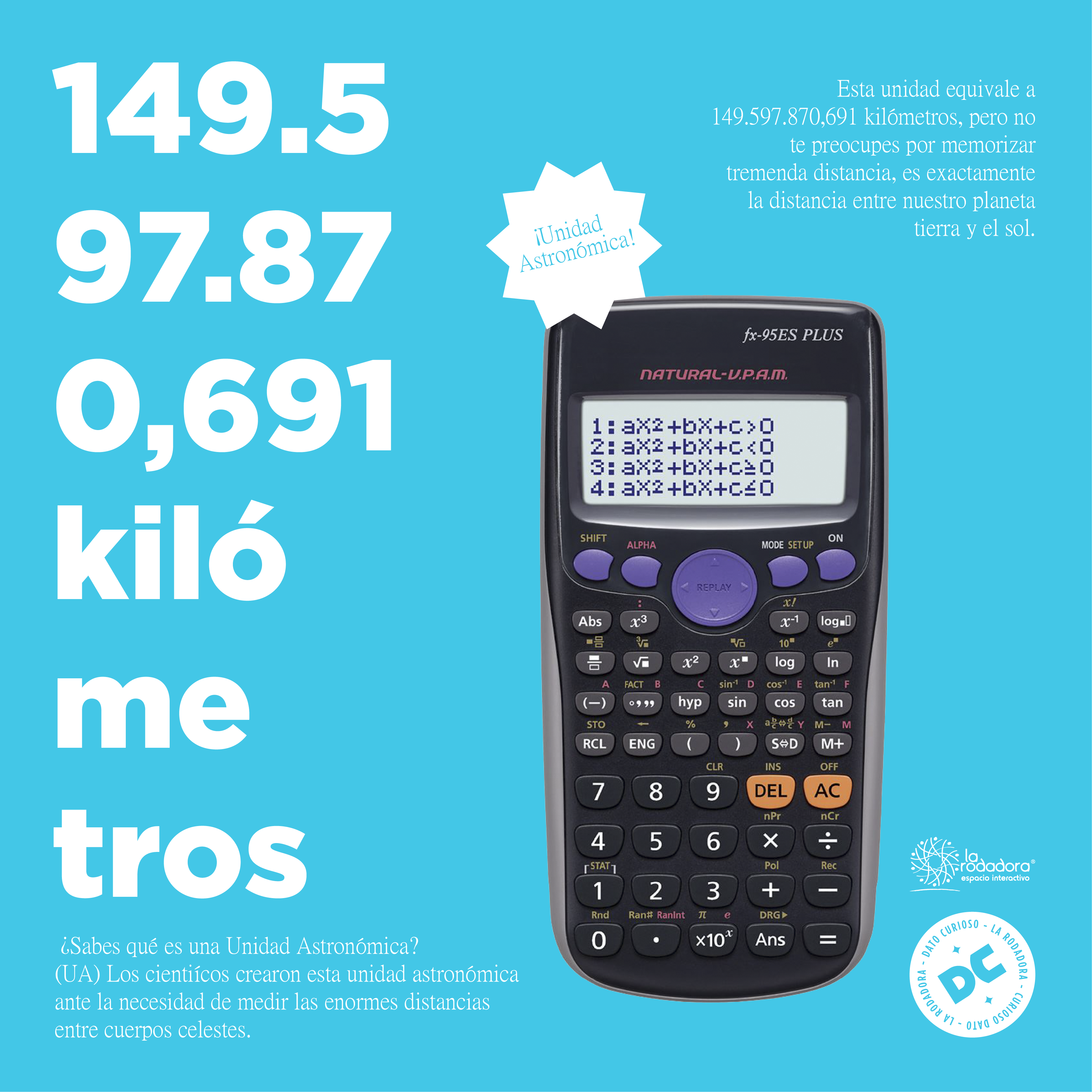 La unidad astronómica de distancia (con símbolo au) es una unidad de longitud que se utiliza en astronomía para las dimensiones típicas del Sistema Solar. La Unión Astronómica Internacional, define 1 au como una longitud igual a exactamente 149 597 870 700 metros. Como puede verse, 1 au es aproximadamente 150 millones de kilómetros, algo menos que la distancia Sol-Tierra. El origen de esta unidad se remonta a los siglos XVI-XVII, cuando no se conocían con precisión las distancias desde el Sol a los diversos objetos del Sistema Solar y se medían tomando como patrón la distancia media Sol-Tierra, que pasó a denominarse unidad astronómica. Como ejemplos, la distancia media Sol-Mercurio es de 0.4 au, mientras que la de Sol-Neptuno (el último de los planetas) es de 30 au.